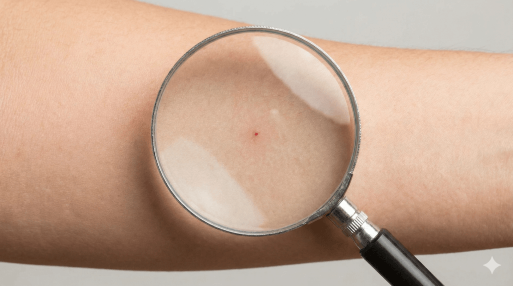 結論から言えば、ゲジが皮膚に接触して刺激が起きた場合、刺された跡は点状の赤みやうっすらとした発赤程度で、目立たないことが多いです。