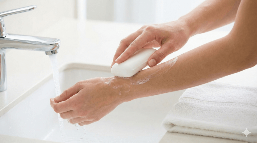 刺された直後は、原因が違っても「清潔にする」が最優先です。虫由来の問題というより、掻き壊しや汚れで炎症が長引くのを防ぐ意味が大きいです。