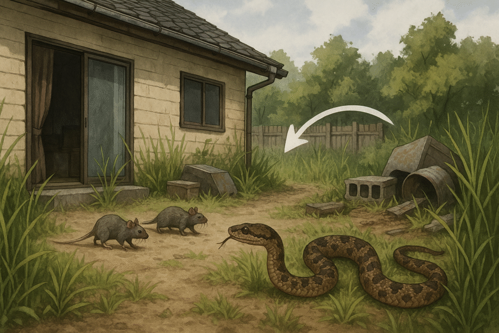 マムシだけを追い払おうとするのではなく、「餌」と「隠れ家」を同時に減らすことが、根本対策の第一歩です。