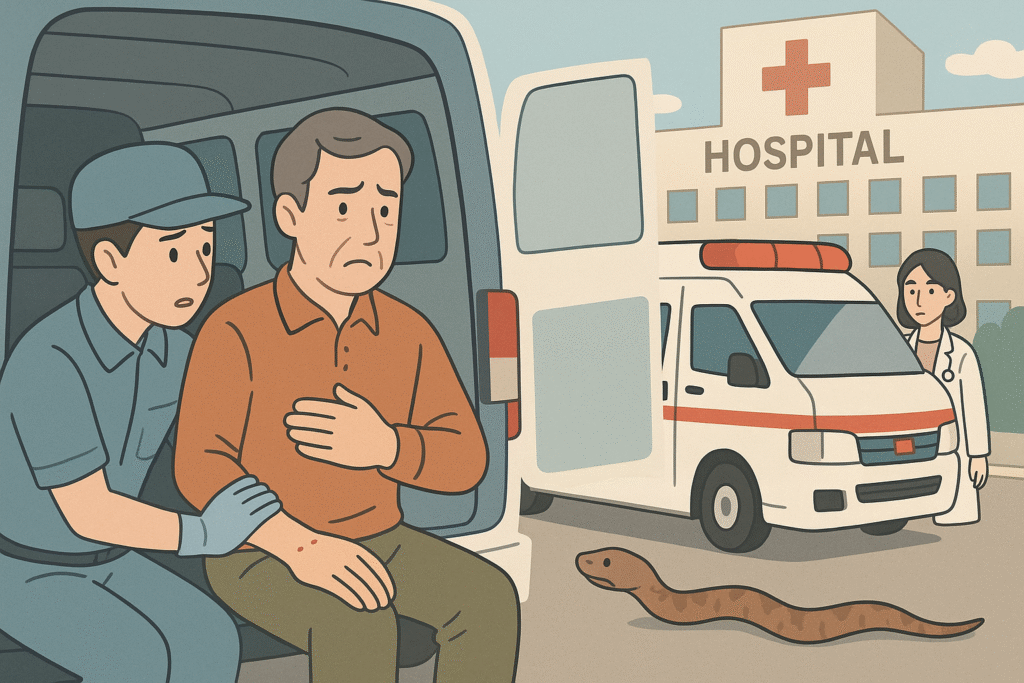 マムシに家の中で咬まれた場合の早期受診と医療処置の流れ