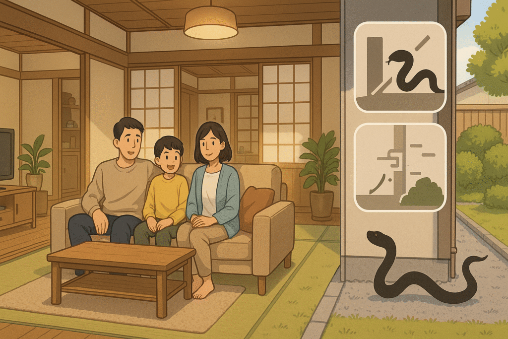 家の中でマムシを見かけた場合は、特に高齢者と子どもを危険なエリアから早めに離し、足元が暗くなる時間帯の動線を見直しておきましょう。