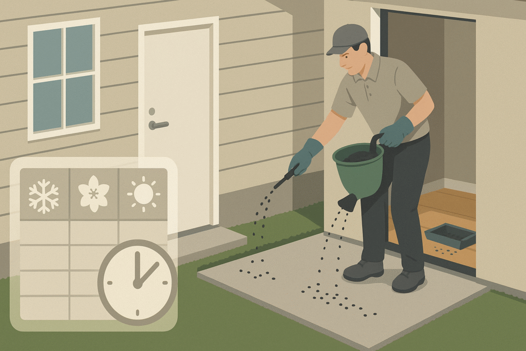 雨で流れたり、時間経過で成分が飛んでしまったりするため、季節ごとに定期的な再散布が必要です。