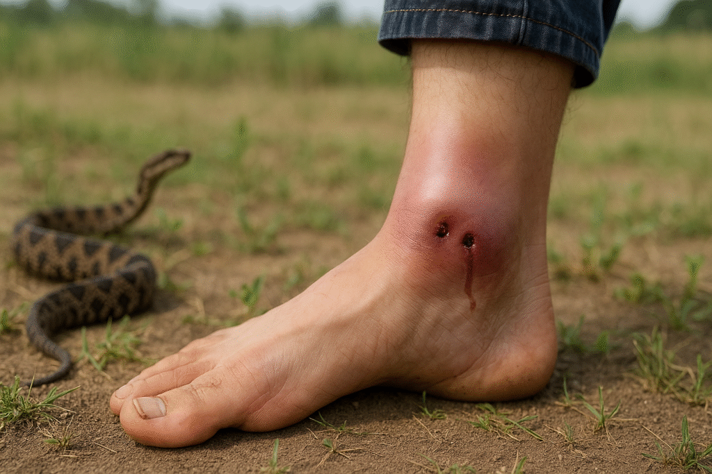 マムシに咬まれた場合の典型的な症状としては、まず咬まれた部位の激しい痛みと腫れがあります。「針で刺された程度」と感じても、時間の経過とともに痛みが増し、皮膚の色が変わってくることが多いです。局所的には、