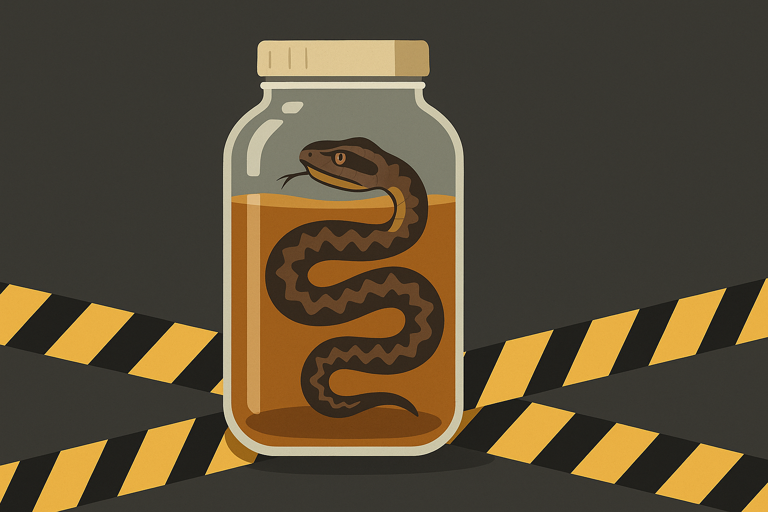 市販の度数が高い蒸留酒にマムシを浸す行為は、一定の条件のもとで例外として認められると解釈される場合もありますが、具体的なラインは複雑で、素人判断で「大丈夫だろう」と自己解釈するのは非常に危険です。