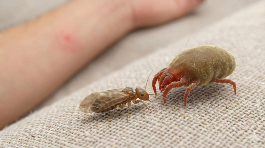 ツメダニは本来、微小昆虫などを狙う捕食者ですが、条件が重なると人に偶発的な刺咬トラブルが出ることもあります。