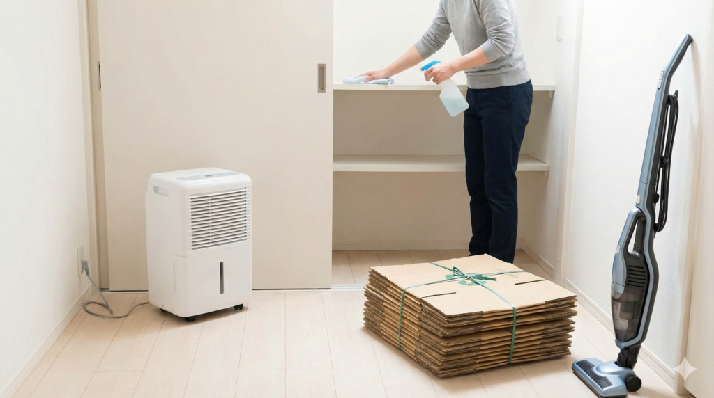 • 一回で終わり:掃除+除湿を継続し、監視期間を設ける