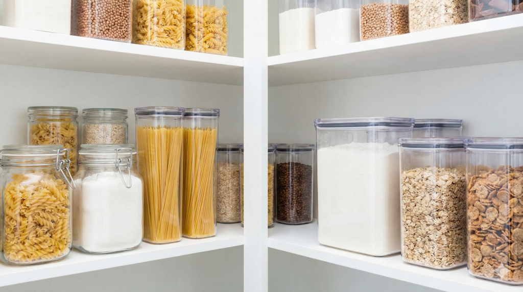 • 粉もの・乾物は硬い密閉容器に移す