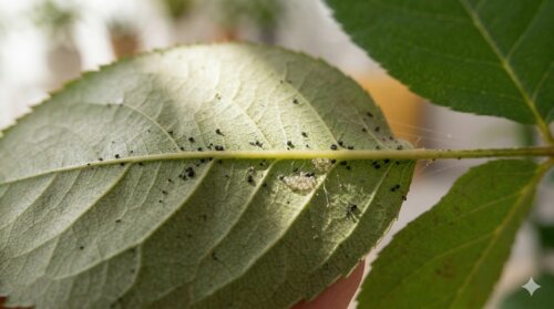 結論からいえば、ハダニが多い場所で見つかる黒い点々は、フンであることが少なくありません。ハダニは葉の裏に口を差し込み、植物の細胞液を吸います。その活動が続くと、葉裏にごく小さな黒い粒が残りやすくなります。とくに、葉脈の近くや葉裏のくぼみ、新芽の近くのやわらかい葉に点状の黒い粒が集まっている場合は、単なる汚れよりも、継続的な吸汁と排泄が起きている可能性を疑った方が安全です。