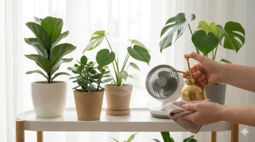 観葉植物は葉にほこりがたまりやすく、そのままにすると観察の精度も落ちます。濡らした布ややわらかいペーパーで葉面を拭く習慣は、見た目をきれいにするだけでなく、被害の早期発見にもつながります。黒い点々や白い斑点に早く気づければ、それだけ対処も軽く済みます。つまり、掃除は見栄えのためだけでなく、れっきとした予防策です。