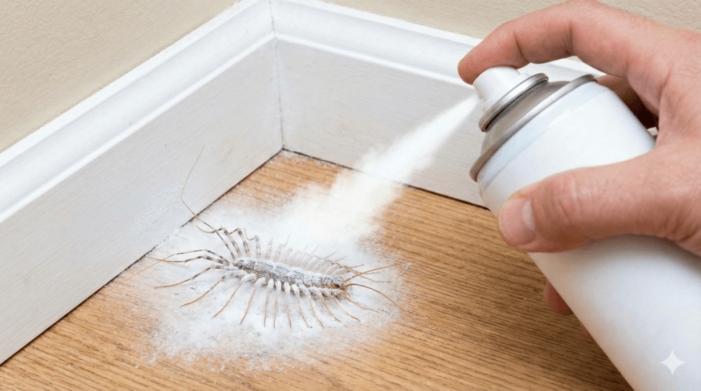 ゲジゲジは壁沿いを走りやすいので、正面から追うより「逃げ道を塞いで短距離で当てる」方が成功率が上がります。