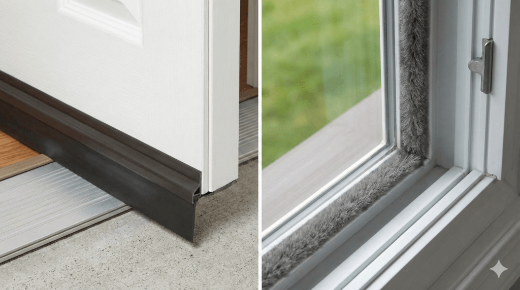 玄関ドア下は、ドアスイープや隙間ブラシで「見える隙間をゼロ」に近づけます。