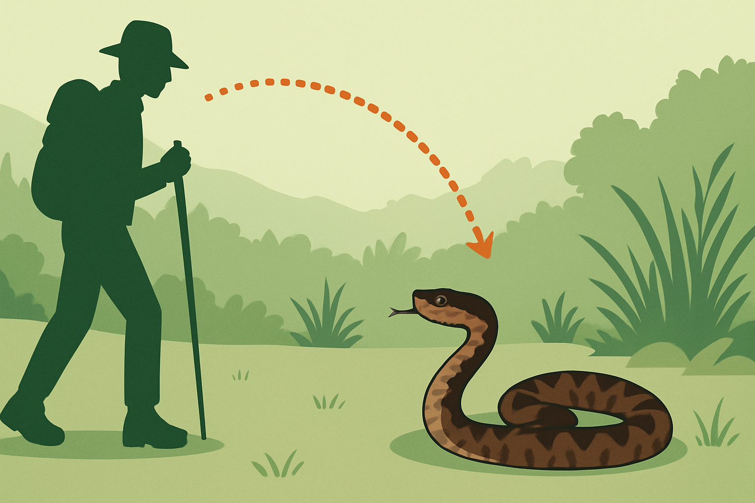 また、蛇の動きは想像以上に素早く、「ゆっくり近づいているつもり」でも、一瞬のスキで一気に距離を詰められることがあります。
