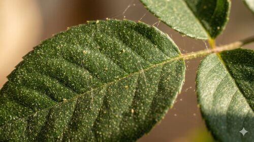 さらに進行すると、葉裏や枝の分岐部にクモの巣のような細い糸が見えることがあります。ここまで来ると、株の上でハダニがかなり増えている可能性が高いです。糸があると薬剤や水が虫体に届きにくくなるため、対処も一段階難しくなります。葉がぱらぱら落ちる、下葉から枯れ上がる、株が妙にくすんで見えるといった変化も重なっていたら、初期ではなく中度以上の被害を疑ってください。
