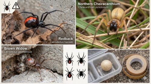 最も注意すべきは、特定外来生物に指定されているセアカゴケグモです。この蜘蛛は攻撃的ではありませんが、うっかり触れてしまうと強い神経毒によって激痛や発熱、重症化すると筋肉の麻痺を引き起こす可能性があります。