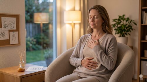 蜘蛛という刺激を受けたとき、私たちの体は「戦うか逃げるか」のモード(交感神経優位)に切り替わります。これを物理的に鎮める最も手軽な方法が呼吸法です。