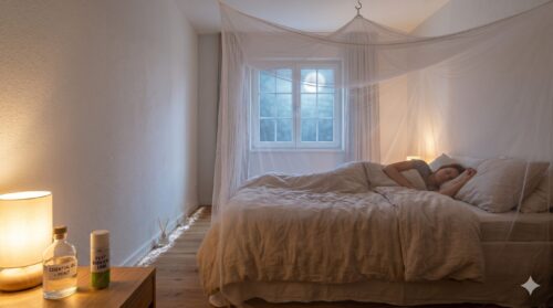 「どうしても不安で一睡もできない」という方には、現代風にアレンジされた蚊帳の導入を強く推奨します。最近ではワンタッチで設置できるテント型の蚊帳が安価で販売されており、これを使えば文字通り蜘蛛の侵入を100%遮断する聖域を確保できます。目の細かいメッシュ越しであれば、万が一外側に蜘蛛が止まったとしても直接触れることはありません。この「絶対に安全な場所がある」という感覚こそが、恐怖症に近い不安を抱える方にとって最大の特効薬となります。