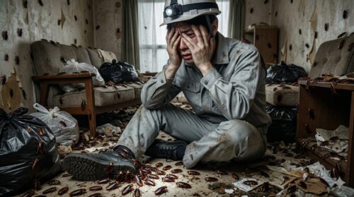 この業界に入る際、最も高いハードルとなるのが「忌避生物への嫌悪感」です。特に、大量発生したゴキブリやその死骸、排泄物にまみれた環境での作業は、慣れるまでは本能的な拒絶反応との戦いになります。私はこれまで数多くの現場を経験してきましたが、ゴミ屋敷のような極端に不衛生な環境では、熟練の技術者であっても一瞬足がすくむことがあります。