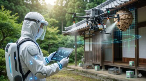 例えば、高所にあるスズメバチの巣。これまでは命がけで梯子を登っていましたが、現在はドローンによる遠隔撮影と、専用の薬剤発射装置を搭載した機体が活躍を始めています。また、ネズミの防除においては、IoTセンサーを罠に設置し、スマホ一つで捕獲状況をリアルタイム監視できるようになっています。これにより、捕まっているかどうかも分からない現場を闇雲に巡回する無駄な労力が劇的に削減されました。