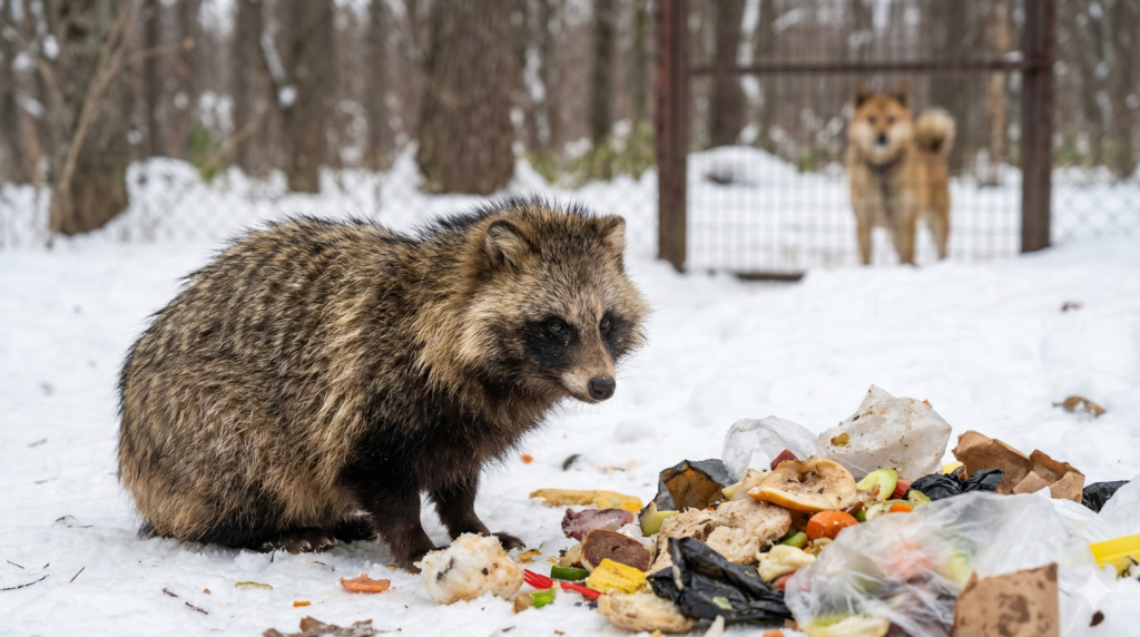 落果、コンポスト、生ゴミ、屋外のペットフードなど、タヌキにとっては冬でも“拾えるカロリー”になります。