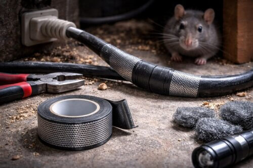 施工前はホコリや油分を拭き取り、たるみや隙間を減らして巻くのが基本です。ただし、最終的にはテープ単独で安心しないでください。配線を守るだけでは、家の中にネズミが残っていれば別の場所をかじります。キッチン下のホース、断熱材、木部、別のコードへと被害が移ることは十分あり得ます。