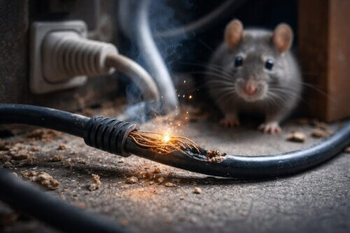 ネズミがかじった瞬間に何かが起こるとは限りませんが、時間差で事故につながるのが厄介です。少し位置がずれた、掃除機が当たった、家具を動かした、湿度が高くなった、そうしたきっかけで急に症状が表面化することがあります。