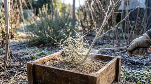 散布時期は葉が落ちきった12月から、芽が動く前の2月の計2回がベストです。7〜10倍に希釈し、樹冠全体が白っぽくなるくらい丁寧に散布します。特に枝の分岐点や幹のヒビ割れには害虫が潜んでいるため、重点的にかけましょう。この冬のひと手間だけで、春以降のアブラムシや病気の発生率が劇的に下がります。なお、石灰硫黄合剤は金属を腐食させ、独特の硫黄臭がするため、住宅街での使用には周囲への配慮が必要です。