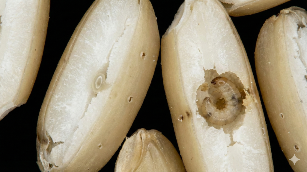 虫食いで米粒の構造が崩れると、湿気を抱きやすくなり、保管環境によってはカビや細菌の増殖リスクも上がります。