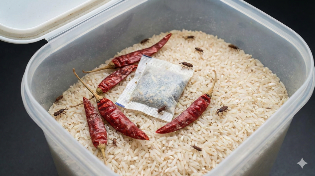 唐辛子やにんにく、米用の防虫グッズは、香りや成分で成虫の行動を鈍らせたり、寄りにくくしたりする狙いがあります。