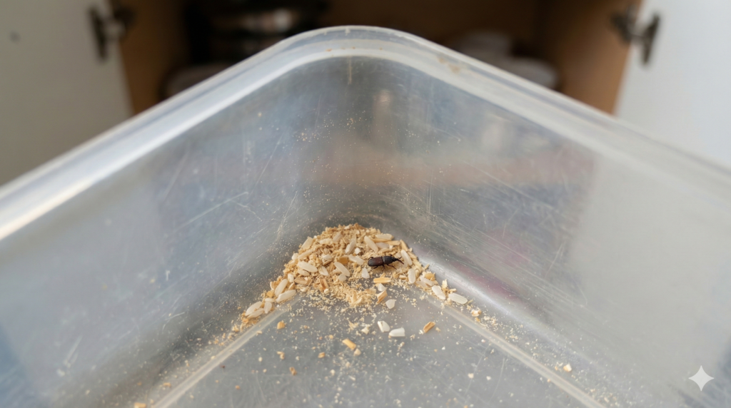米びつや棚に残ったぬか・破砕米が温床なら、冷凍後にまた同じことが起きます。