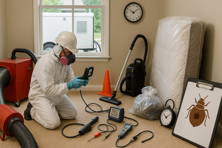 専門業者は、室内全体の生息範囲を点検し、薬剤と熱、吸引などを組み合わせて体系的に処理します。