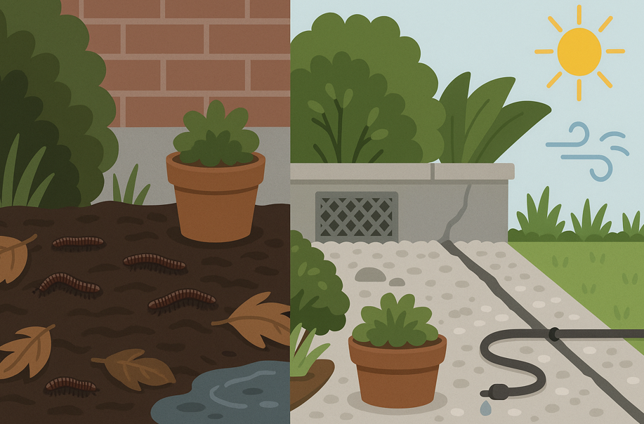 • 散水は朝にまとめ夜間の過湿を避け鉢底は通気を確保する