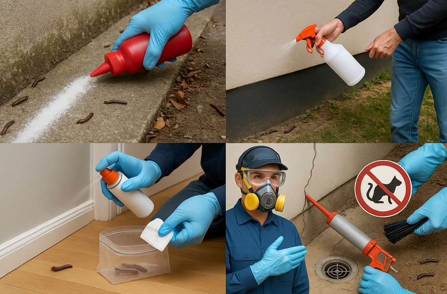 外周の地表には連続した忌避帯を設け、ドアや勝手口前は粉剤やパウダースプレーでブレークラインを形成します。