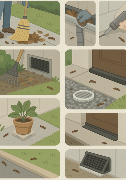 対処の起点は、発生期より前の環境整備です。具体的には、外周の落ち葉・刈草・腐植の除去、基礎周りの透水と排水の改善、犬走りの勾配修正、目地やひび割れの充填、屋外照明の直下にできる虫寄せスポットの見直しなどが挙げられます。