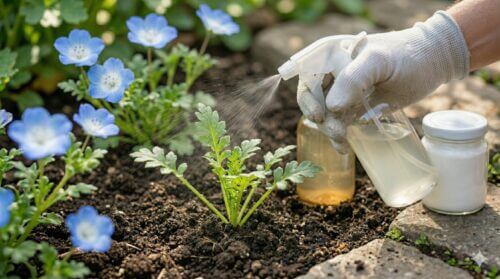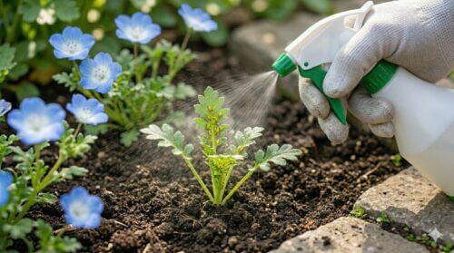これらのスプレーの強みは、虫に直接かかって効く「接触効果」と、葉から吸収されてしばらく効き続ける「浸透移行性」を併せ持っている点です。ネモフィラは葉が重なり合いやすいため、散布する際は表面だけでなく、株を優しく持ち上げて葉の裏や株元の隙間にもしっかり届くように噴霧するのがコツです。また、スプレー剤は早朝や夕方の涼しい時間帯に使用しましょう。日中の炎天下での散布は、薬液が急速に乾燥して濃度が高まり、「薬害」を引き起こすリスクがあります。