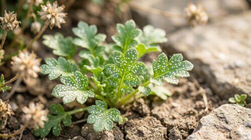ハダニは体長0.5mm以下と極めて小さいため、初期段階で肉眼で見つけるのは至難の業です。特にネモフィラは「蒸れ」を嫌うため、多くの栽培者が「乾かし気味」に管理します。しかし、この乾燥状態がハダニにとっては楽園となります。特にベランダの下など雨が当たらない場所や、風通しが悪く気温が高い場所は、数日で壊滅的な被害を受けることがあります。末期症状になると、葉の間に微細なクモの巣状の糸が張り巡らされ、こうなると株の回復には多大な時間を要します。