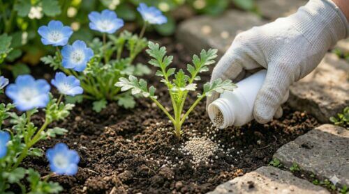 ネモフィラのように這うように広がる植物は、後からスプレー剤を株の奥まで届けるのが物理的に難しいことがあります。だからこそ、植え付け時に土に混ぜ込んでおく「予防投与」が非常に理にかなっています。特にアブラムシの飛来時期に合わせて施用することで、初期の爆発的増加を確実に抑えることができます。効果の持続期間は製品によりますが、通常1ヶ月程度です。成長期の3月~4月にかけて定期的に追肥感覚で施すのがプロのルーチンです。
