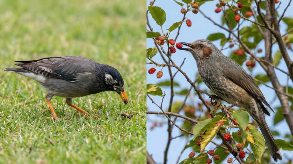 ムクドリは果実も食べますが、都市部ではねぐら由来の騒音・糞害が問題になりやすいです。