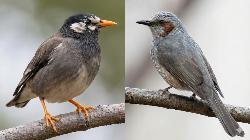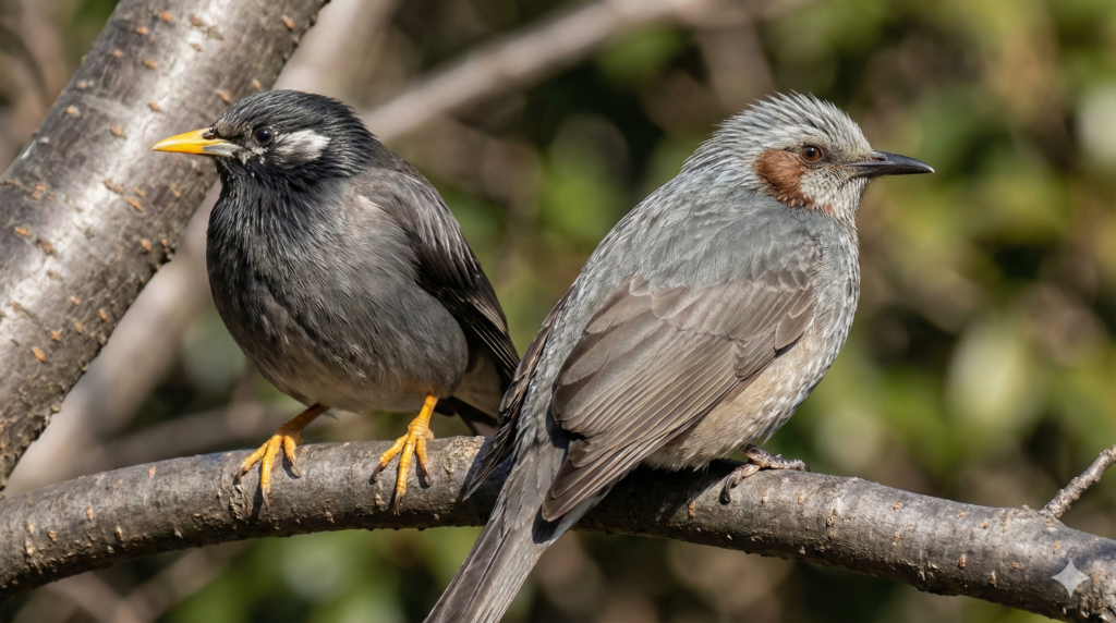 ムクドリは黄色系、ヒヨドリは黒系。この差は光の影響を受けにくく、遠目でも拾えれば強い決め手になります。