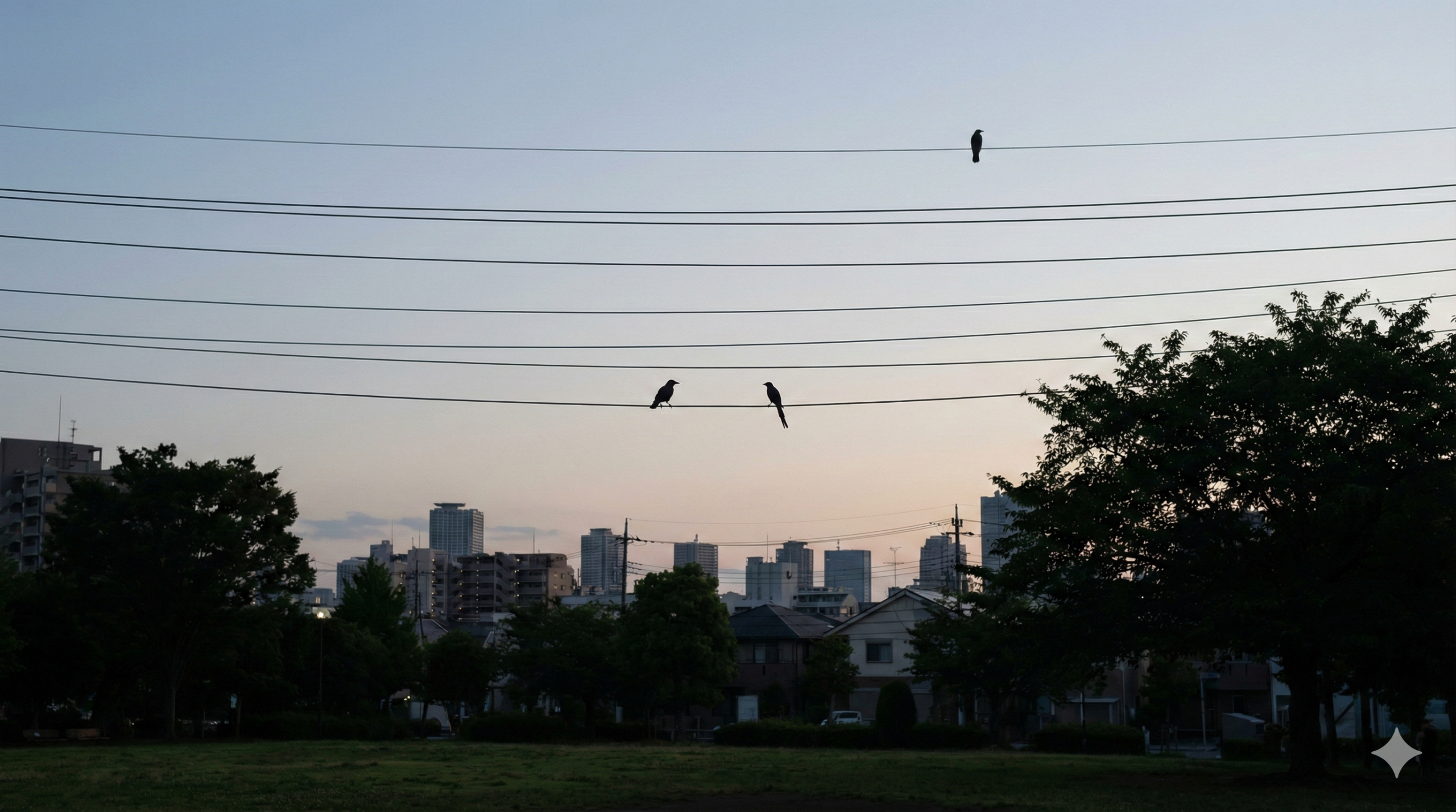 電線、街路樹、ビル影、アスファルト、人工照明。こうした環境では、鳥の羽のグラデーションよりも、輪郭や動きが先に目に入ります。