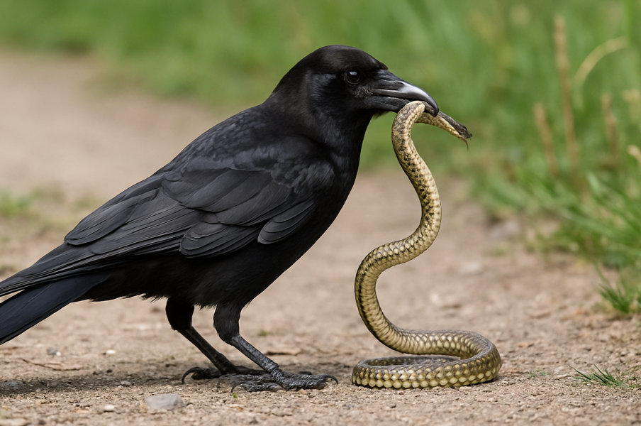 要するに、カラスは機会捕食者としてヘビを食べることがあり、特に幼蛇や負傷個体、低温時の個体が狙われやすいということです。