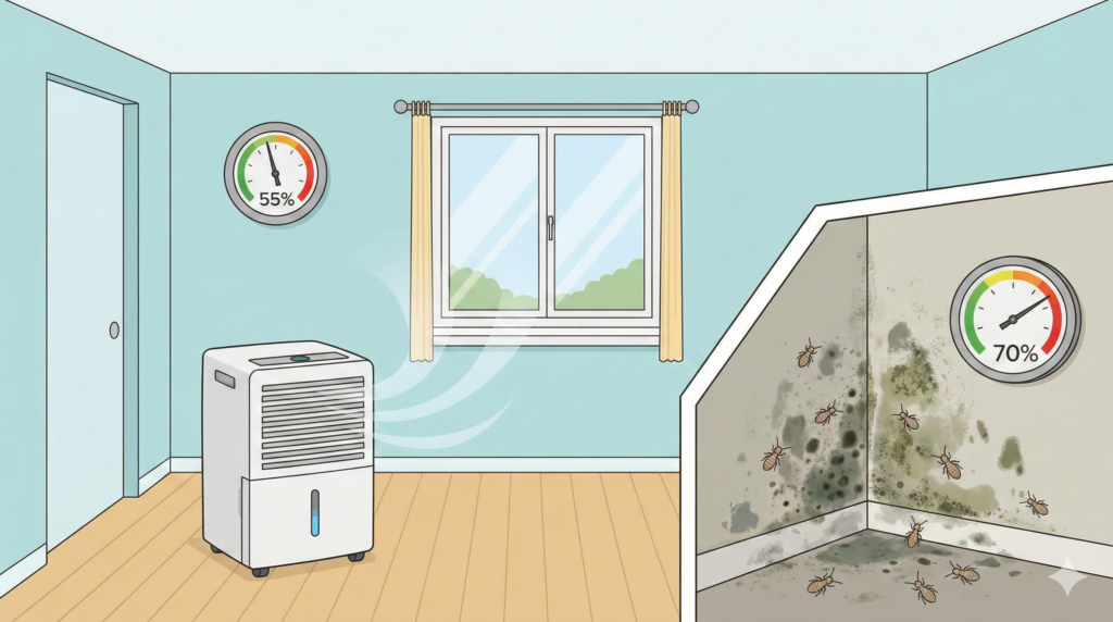 チャタテムシは湿度対策|発生原因と55%以下で防ぐ完全手順