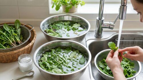 よく「塩水に浸けると虫が出てくる」と言われます。確かに浸透圧の変化により、アブラムシなどが葉から離脱しやすくなる効果はありますが、殺菌や寄生虫の完全な駆除ができるわけではありません。塩分濃度が濃すぎると葉が萎びて食感が損なわれるため、使用する場合は1〜2%程度の薄い塩水に短時間潜らせる程度に留めましょう。あくまで物理的な洗浄の補助として捉えるのが賢明です。