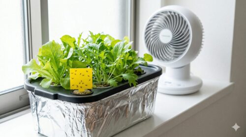 室内は風通しが悪くなりやすく、湿気がこもりがちです。これは害虫やカビにとって好都合な環境です。サーキュレーターや扇風機を使い、ベビーリーフに微風を送り続けることで、虫の定着を防ぎ、同時に株を丈夫に育てることができます。微風は葉面境界層を乱し、虫が着陸しにくい状況を作り出すため、意外にも強力な防虫手段となります。