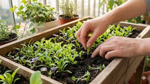 ベビーリーフは種を密にまくことが多いですが、そのまま育てると株が重なり合い、株元に湿気がこもります。これはアブラムシの繁殖や「立ち枯れ病」を誘発する最大の原因です。本葉が1〜2枚出た頃に、株同士が触れ合わない程度に間引きを行ってください。間引きにより風通しが良くなると、害虫が定着しにくくなるだけでなく、日光が一枚一枚の葉にしっかりと当たり、厚みのある丈夫な葉へと成長します。間引いた葉はぜひサラダの彩りとして活用してください。