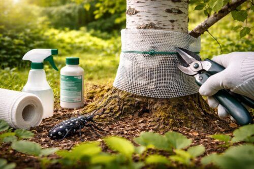 カミキリムシ対策は、成虫を見かけた時点で終わりではありません。大事なのは、産卵される前後のタイミングで幹を守ることです。白樺は樹液に虫が寄りやすく、傷んだ樹皮や剪定後の傷口も狙われやすいため、幹の保護と切り口管理が欠かせません。