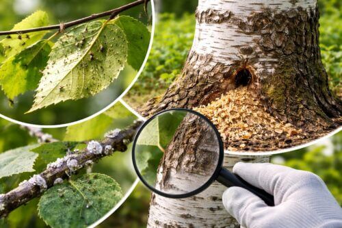 ここでは、まず白樺に出やすい異変から原因を絞る考え方を整理します。白樺につく害虫駆除は、虫の名前を覚えることよりも、被害が葉に出ているのか、幹に出ているのか、樹勢低下が先にあるのかを見極めることが大切です。葉裏、新芽、枝の分岐部、幹の地際を順番に見るだけでも、判断の精度はかなり上がります。