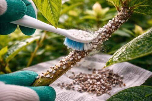 私が実践している最も効果的な方法は、「冬の物理的除去」です。植物が休眠期に入る冬、葉が少なくなったタイミングで枝をチェックしてください。カイガラムシを見つけたら、古い歯ブラシやヘラを使い、枝を傷つけないように優しく、かつ確実に擦り落とします。これだけで、春以降の爆発的な増殖を抑えることができます。擦り落とした虫は地面で生き残る可能性があるため、新聞紙などを敷いて回収し、可燃ゴミとして処分するのが理想的です。