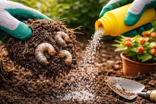 突然枯れる原因となるコガネムシ幼虫の土壌処理