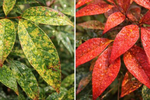 私が見分けで重視しているのは、色の出方が均一かどうか、そして葉の形まで崩れているかどうかです。きれいに全体が赤くなるなら季節変化の可能性が高いですが、まだら模様や変形を伴うなら病気や害虫を疑うべきです。また、赤いだけでなく、黒い斑点や茶色の枯れ込みが混ざる場合は、真菌性の病気や生理障害の可能性もあります。南天は環境ストレスでも見た目が変わるため、色だけで断定しないことが重要です。