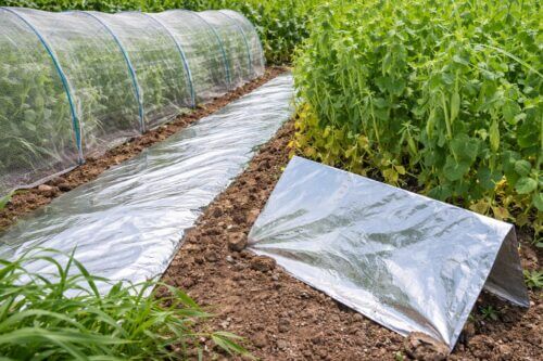 飛来害虫を減らしたいなら、私はシルバーマルチや反射資材をかなり評価しています。アブラムシやアザミウマは反射光を嫌って着地しにくくなるため、株元からの反射を作るだけでも違いが出やすいです。特に幼苗期は株が小さく、防虫ネットの内側に入られたときのダメージも大きいので、物理的な予防を重ねる価値があります。